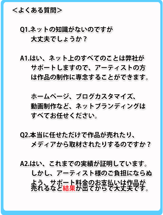 ■アーティスト支援事業部では、画家やミュージシャンなどのアーティストを